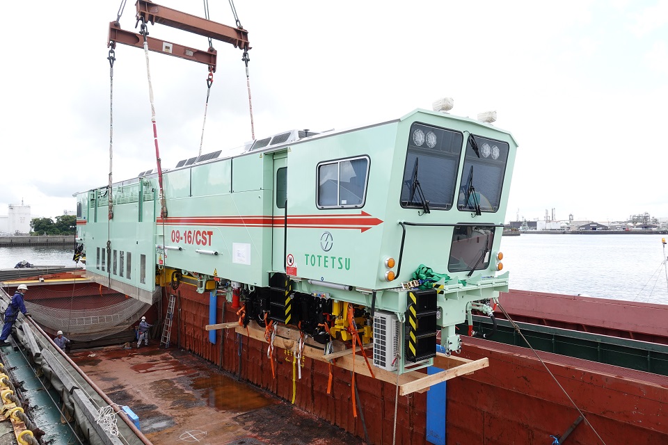 千葉県市原市の貨物港で、大型保線機械のマルチプルタイタンパ(マルタイ)の新型車が荷揚げされました。この新型車は、JR東日本管内で稼働するマルタイとしては最新型であり、騒音の低減や生分解性のパノリン油を使用するなど環境にもやさしく、また、タッチパネルなどにより操作性も向上しています。