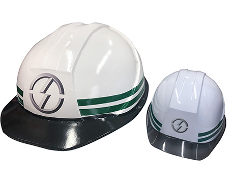 つば九郎特製ヘルメット(左)東鉄工業ヘルメット(右)