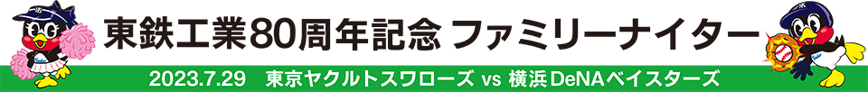神宮球場で開催される7月29日(土)横浜DeNAベイスターズ戦のゲームスポンサーとして、『東鉄工業80周年記念ファミリーナイター』を開催します。