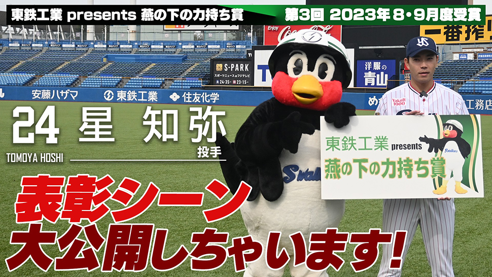 当社がスポンサーを務める東京ヤクルトスワローズを「縁の下」で支える選手にスポットライトを当てる企画「東鉄工業presents燕の下の力持ち賞」の第3回受賞者が、星 知弥投手に決定しました。