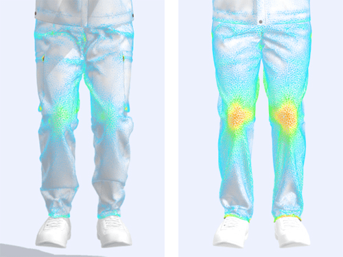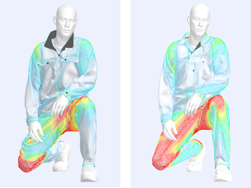 バーチャル上で、株式会社オンワードコーポレートデザインの従来品と今回開発した新制服のパンツの着圧を検証しま
