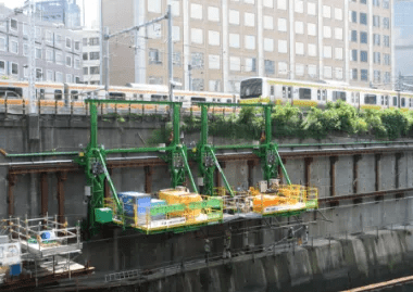 また、鉄道専門技術を活かした技術開発では、多くの成果品が駅、高架橋、橋りょうなどの工事で幅広く活用され、作業効率の向上に取り組んでいます。