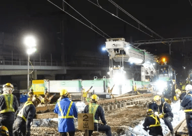 各鉄道会社の様々な場所で毎晩行われている、線路の修繕、レールやマクラギの交換などの作業は、快適な列車の走行や列車を利用されるお客様の安全の確保に、欠かすことのできない重要な工事です。