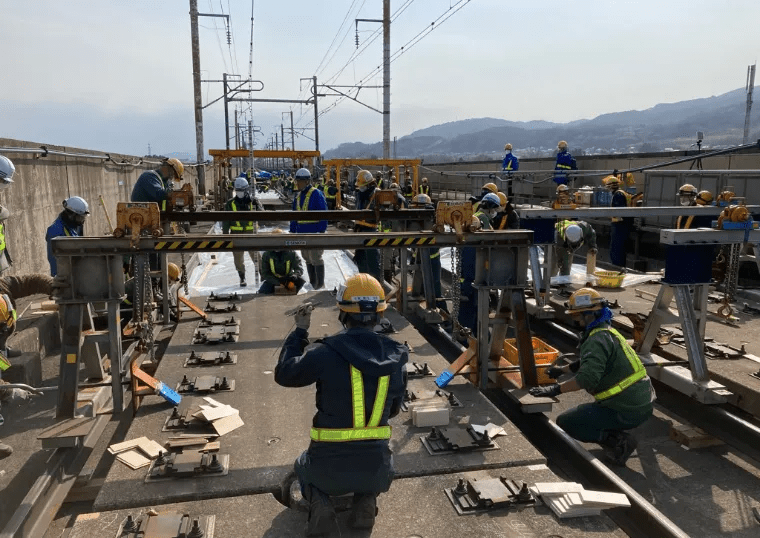 北陸新幹線金沢~敦賀間延伸や相鉄・東急直通線、芳賀・宇都宮LRT事業における軌道新設、高輪ゲートウェイ新駅の山手線・京浜東北線配線改良に伴う線路切換工事など、新幹線をはじめとするJR東日本・公民鉄など多数の軌道新設・切換工事を手掛けています。