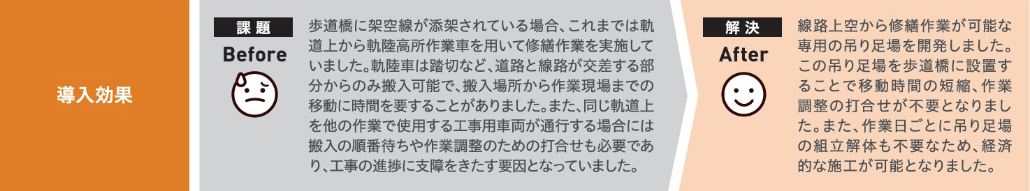 (一時的な通行止め有り) - 全ての作業が線路上空で可能なため、他作業との調整が不要