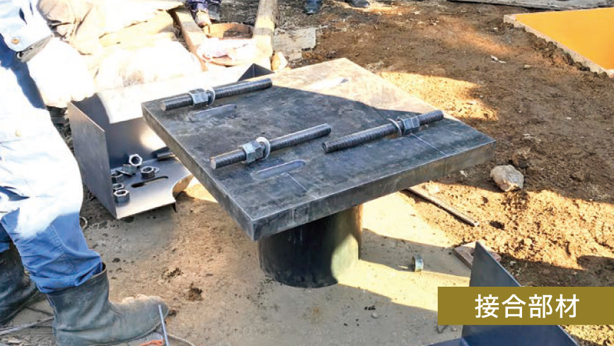 - ルーズホールにより鋼管杭の芯ずれを調整可能