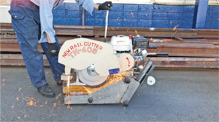 - レール切断時の火花の飛散を防止