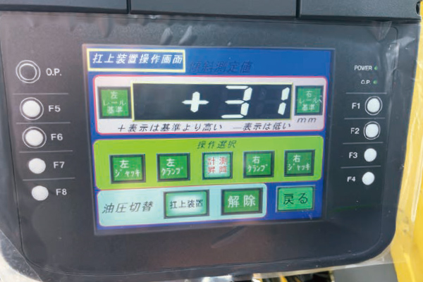 左右レールの高低差を測定する水準器を搭載しています。 施工前(線路こう上前)の水準値を控えておくことで、線路こう上後との水準差をもとにジャッキアップ量をミリ単位で確認できます。