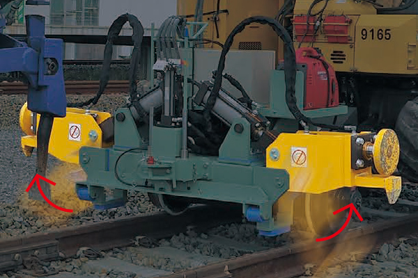 小型つき固め機械 軌陸4頭一体型線路こう上装置(T-S2)